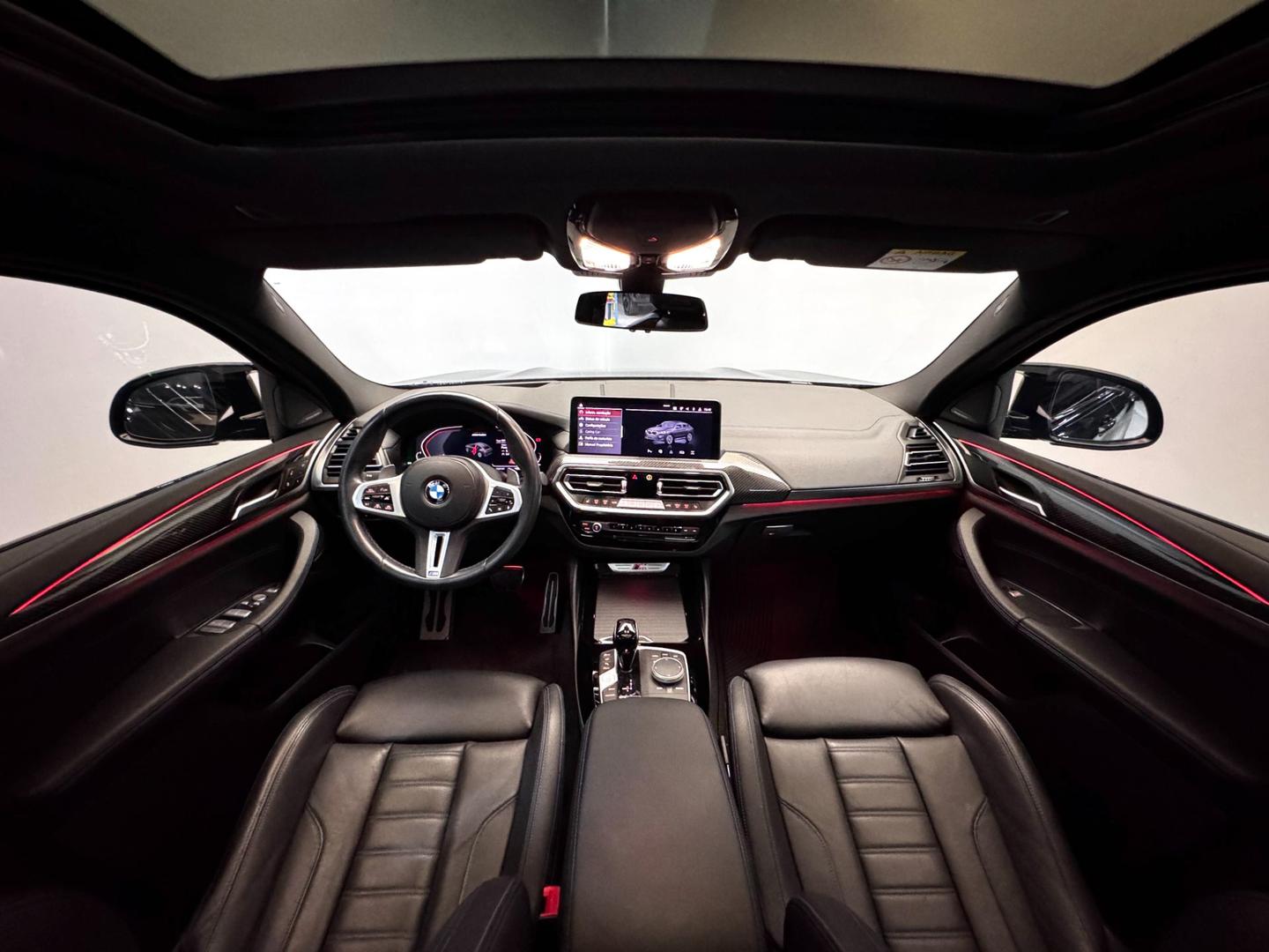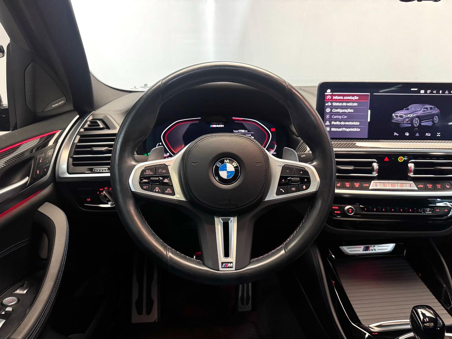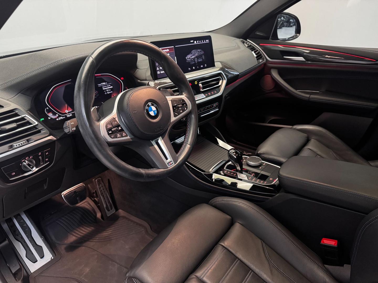 Diferenciais: Pacote M Sport completo, escapamento M Sport, suspensão adaptativa, freios M Sport, volante M multifuncional em couro, head-up display, teto solar panorâmico, iluminação ambiente, assistente de estacionamento, câmera 360º, ar-condicionado automático de 3 zonas, sistema de som Harman Kardon, rodas de liga leve M aro 21?, chave presencial e acabamento interno em black piano e fibra de carbono.